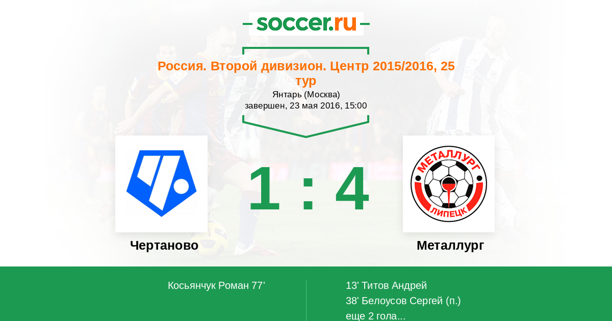 Протокол матча Чертаново против Металлург