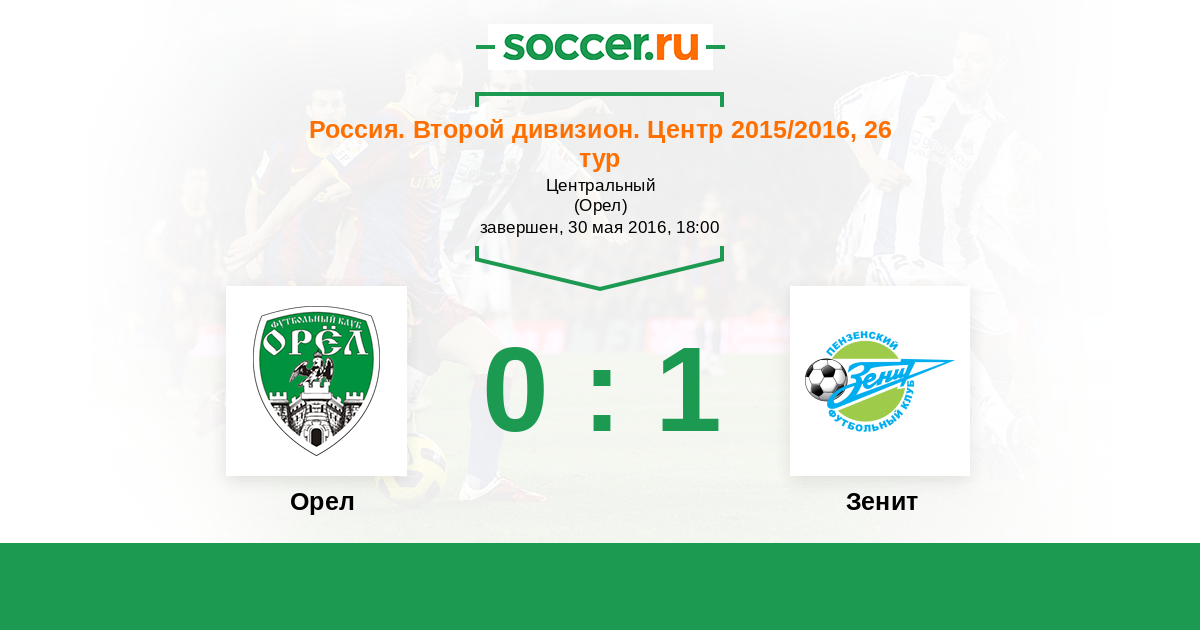 Россия. Вторая лига. Группа 3 10.04.2015 Орел Логотип футбольный клуб Орел 0:2 Логотип футбольный клуб Зенит (Пенза) Зенит