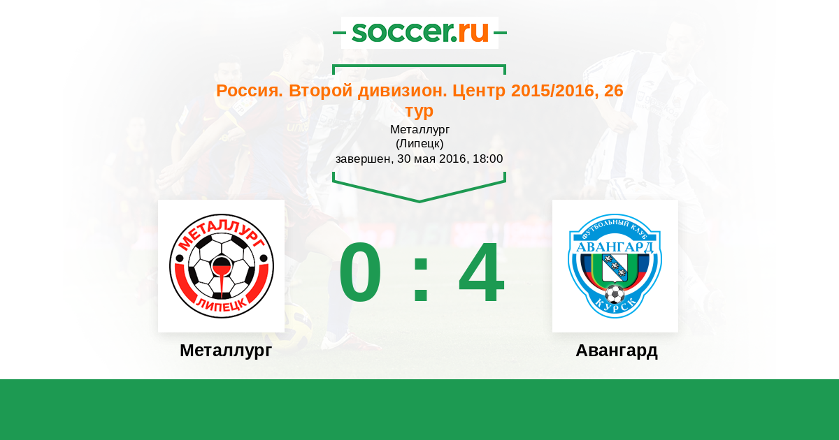 Россия. Вторая лига. Группа 3 18.05.2015 Металлург Логотип футбольный клуб Металлург (Липецк) 0:1 Логотип футбольный клуб Авангард (Курск) Авангард