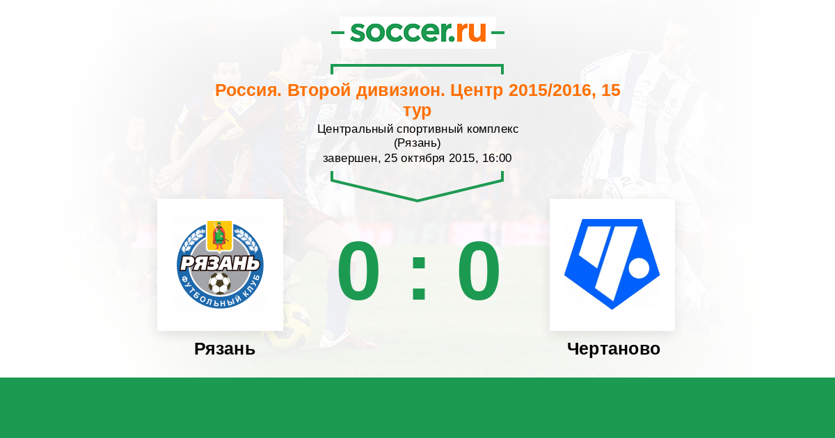 Россия. Вторая лига. Группа 3 16.10.2016 Рязань Логотип футбольный клуб Рязань 2:2 Логотип футбольный клуб Чертаново (Москва) Чертаново