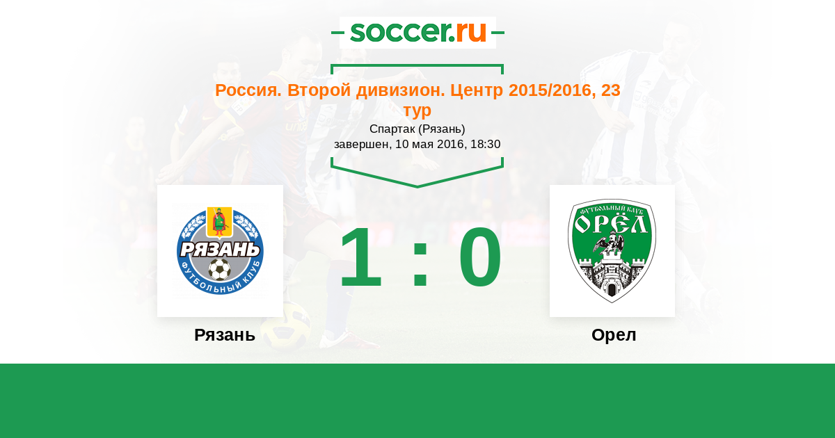 Россия. Вторая лига. Группа 3 26.04.2017 Рязань Логотип футбольный клуб Рязань 3:0 Логотип футбольный клуб Орел Орел