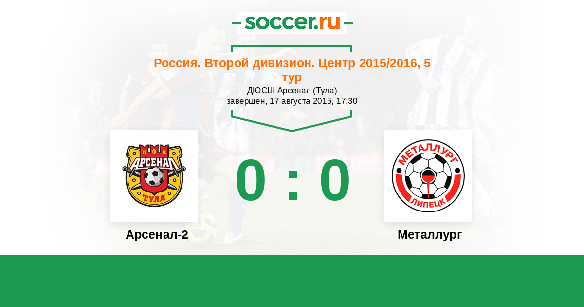 Россия. Вторая лига. Группа 3 02.08.2014 Металлург Логотип футбольный клуб Металлург (Липецк) 2:1 Логотип футбольный клуб Арсенал-2 (Тула) Арсенал-2