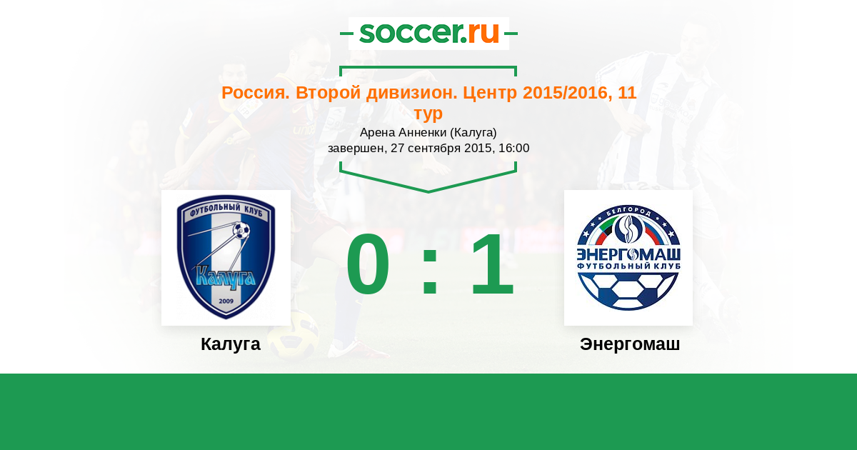 Россия. Вторая лига. Группа 3 17.09.2016 Калуга Логотип футбольный клуб Калуга 1:1 Логотип футбольный клуб Энергомаш (Белгород) Энергомаш