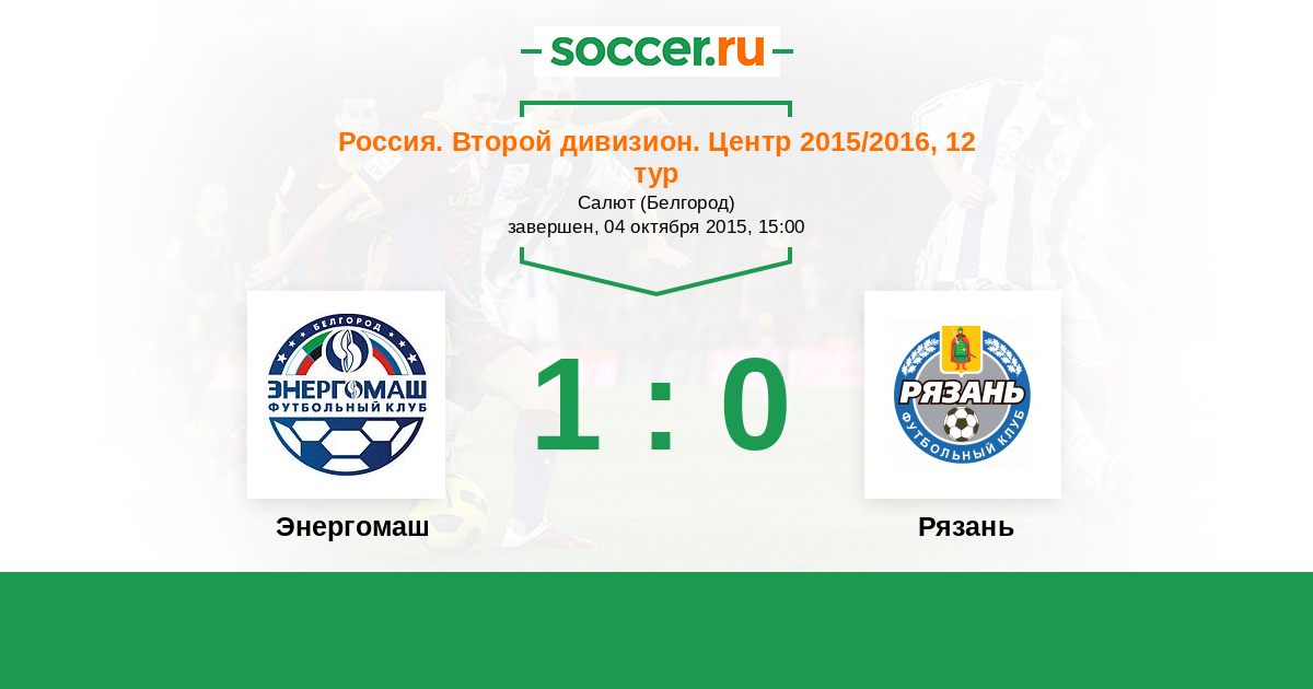 Россия. Вторая лига. Группа 3 09.04.2017 Энергомаш Логотип футбольный клуб Энергомаш (Белгород) 2:0 Логотип футбольный клуб Рязань Рязань