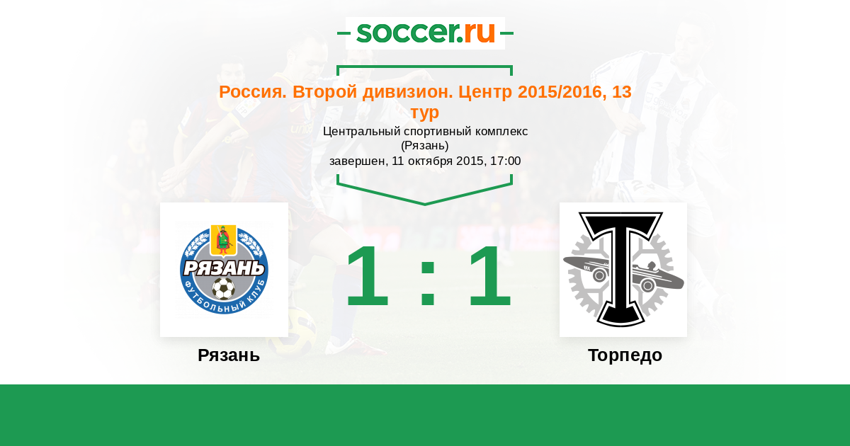 Россия. Вторая лига. Группа 3 30.10.2016 Торпедо Логотип футбольный клуб Торпедо (Москва) 1:1 Логотип футбольный клуб Рязань Рязань