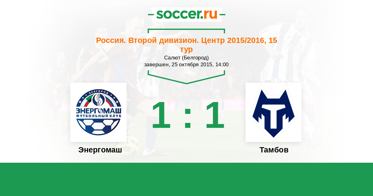 Россия. Вторая лига. Группа 3 03.08.2015 Тамбов Логотип футбольный клуб Тамбов 1:0 Логотип футбольный клуб Энергомаш (Белгород) Энергомаш