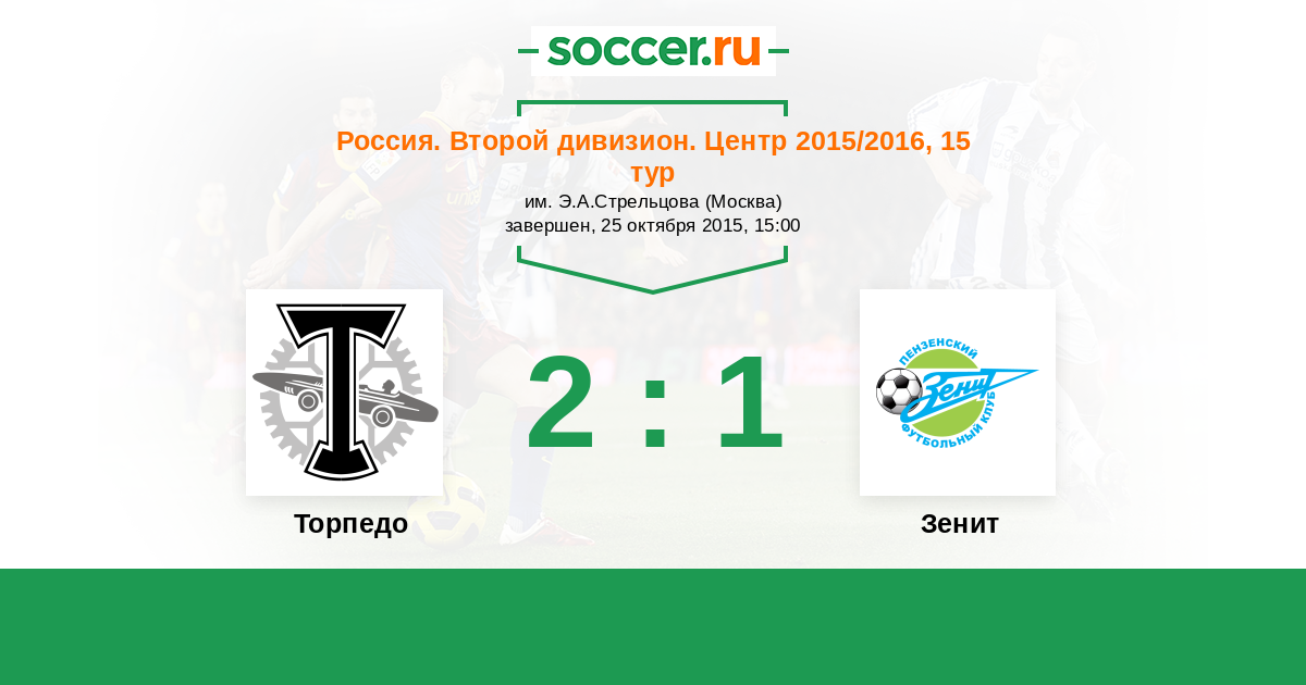 Россия. Вторая лига. Группа 3 03.08.2015 Зенит Логотип футбольный клуб Зенит (Пенза) 3:0 Логотип футбольный клуб Торпедо (Москва) Торпедо