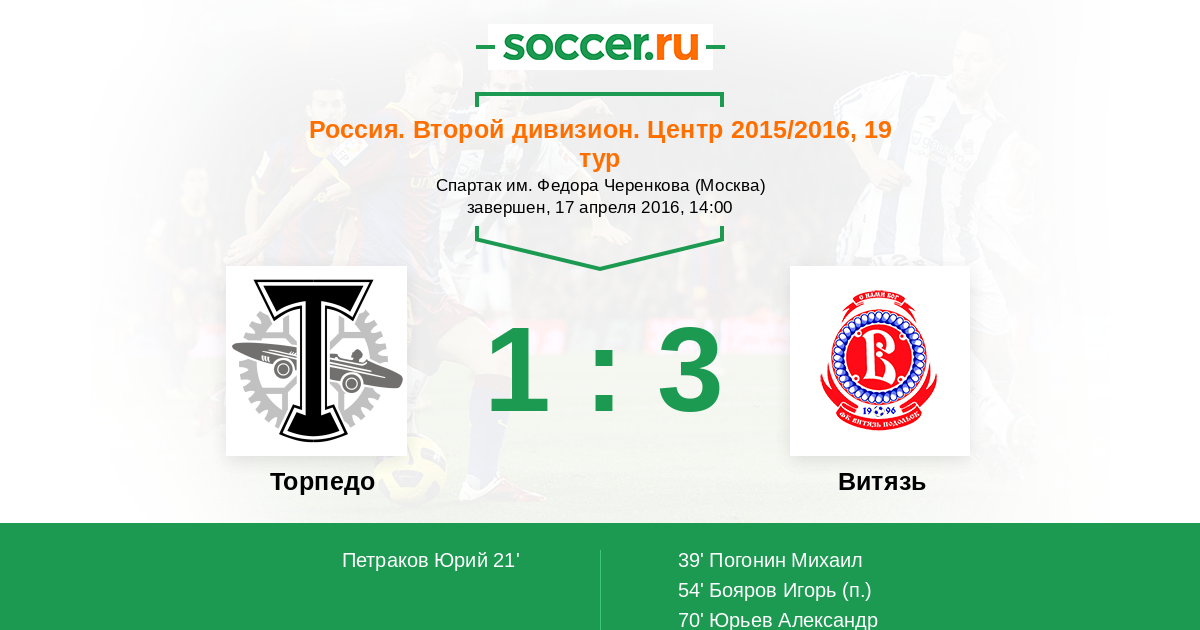 Россия. Второй дивизион. Центр 2015/2016, 19 тур