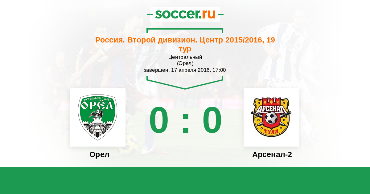 Россия. Вторая лига. Группа 3 22.04.2017 Орел Логотип футбольный клуб Орел 0:3 Логотип футбольный клуб Арсенал-2 (Тула) Арсенал-2