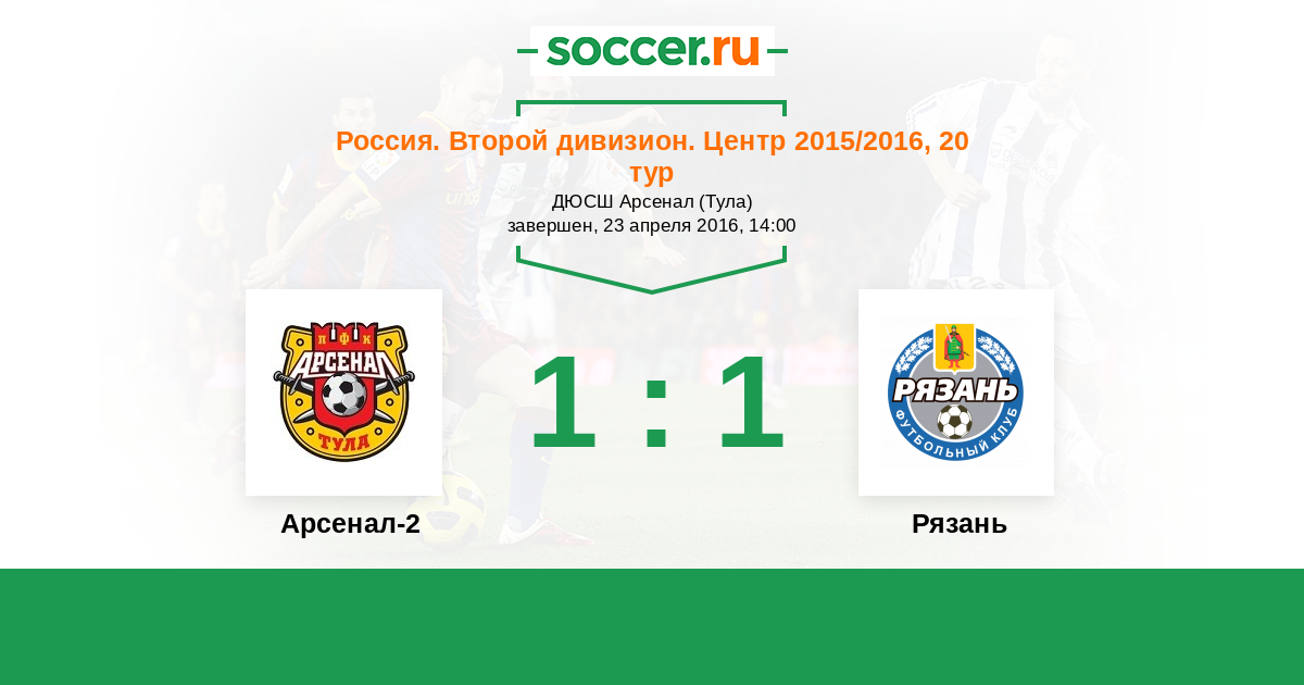 Россия. Вторая лига. Группа 3 12.05.2015 Рязань Логотип футбольный клуб Рязань 1:0 Логотип футбольный клуб Арсенал-2 (Тула) Арсенал-2
