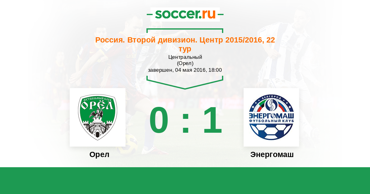 Россия. Вторая лига. Группа 3 21.09.2015 Энергомаш Логотип футбольный клуб Энергомаш (Белгород) 1:1 Логотип футбольный клуб Орел Орел