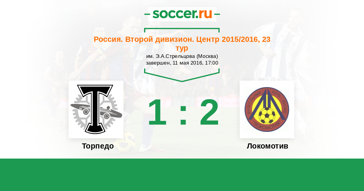 Россия. Вторая лига. Группа 3 27.09.2015 Локомотив Логотип футбольный клуб Локомотив (Лиски) 1:0 Логотип футбольный клуб Торпедо (Москва) Торпедо