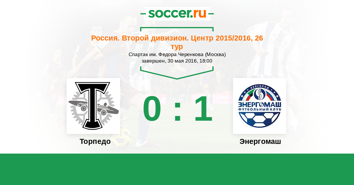 Россия. Вторая лига. Группа 3 27.05.2018 Торпедо Логотип футбольный клуб Торпедо (Москва) 1:2 Логотип футбольный клуб Энергомаш (Белгород) Энергомаш