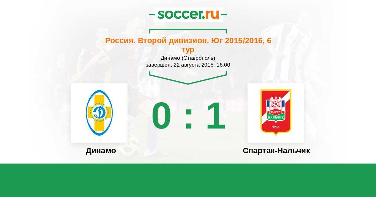 Россия. Вторая лига. Группа 1 03.04.2016 Спартак-Нальчик Логотип футбольный клуб Спартак-Нальчик 2:1 Логотип футбольный клуб Динамо Ставрополь Динамо Ставрополь