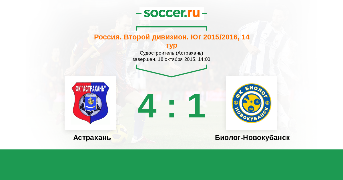 Россия. Вторая лига. Группа 1 28.07.2015 Биолог-Новокубанск Логотип футбольный клуб Биолог-Новокубанск 1:3 Логотип футбольный клуб Астрахань Астрахань