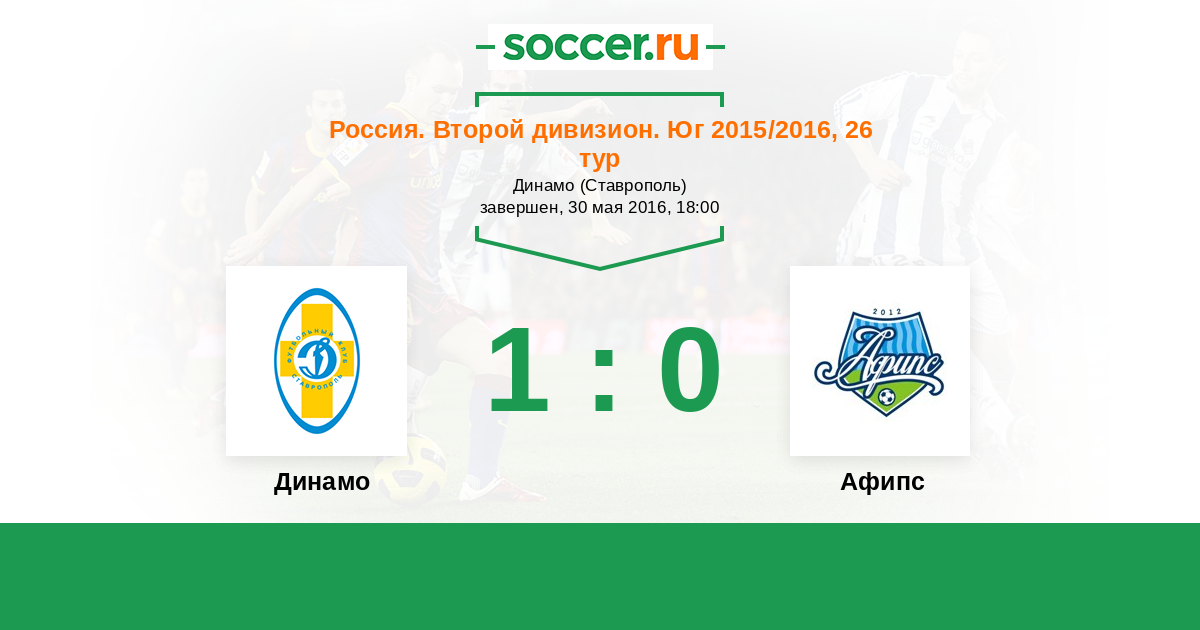 Россия. Вторая лига. Группа 1 20.07.2015 Афипс Логотип футбольный клуб Афипс (Афипский) 2:1 Логотип футбольный клуб Динамо Ставрополь Динамо Ставрополь