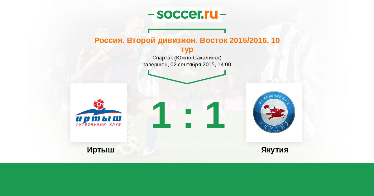 Россия. 2-й дивизион. Восток 12.09.2015 Якутия Логотип футбольный клуб Якутия (Якутск) 2:0 Логотип футбольный клуб Иртыш (Омск) Иртыш