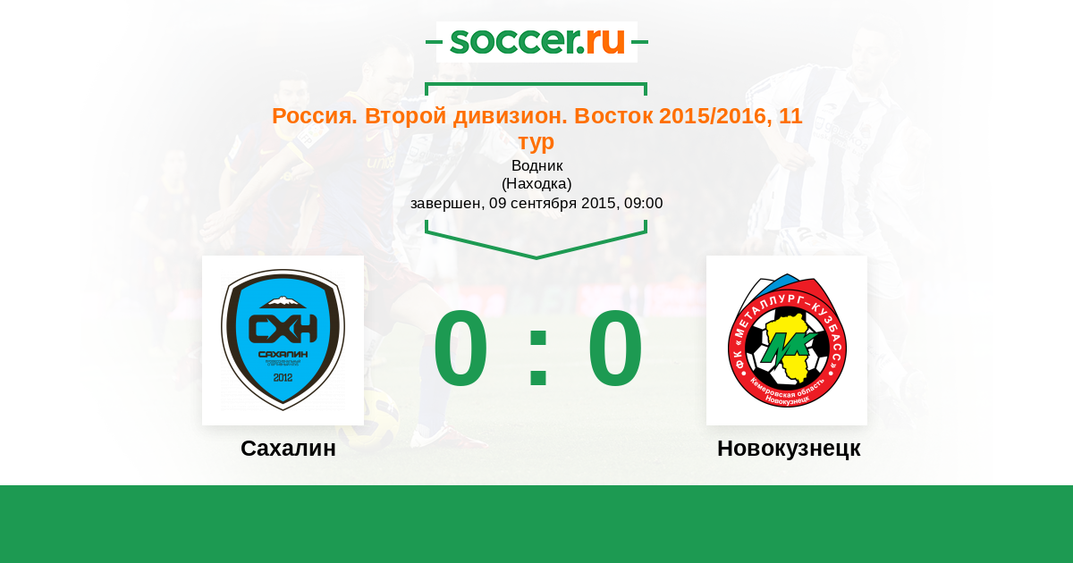 Россия. 2-й дивизион. Восток 30.08.2015 Новокузнецк Логотип футбольный клуб Новокузнецк 1:2 Логотип футбольный клуб Сахалин (Южно-Сахалинск) Сахалин