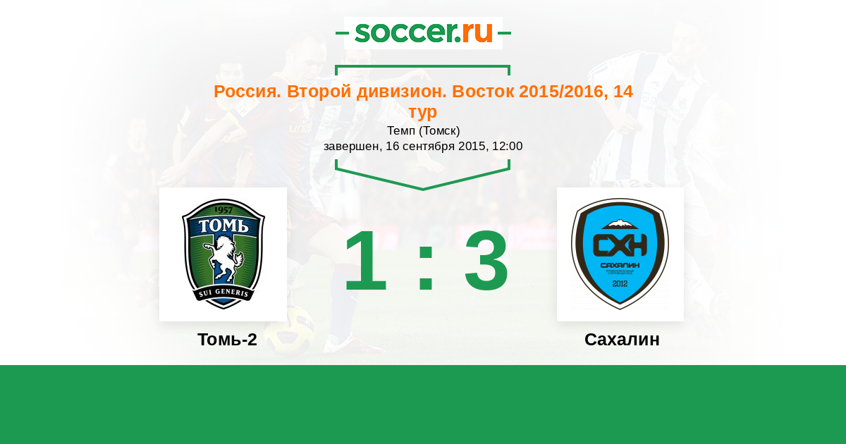 История матча Томь-2 против Сахалин