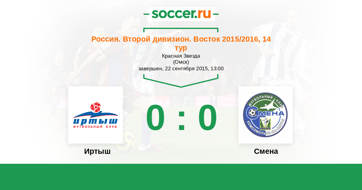Россия. 2-й дивизион. Восток 05.05.2015 Смена Логотип футбольный клуб Смена (Комсомольск-на-Амуре) 0:0 Логотип футбольный клуб Иртыш (Омск) Иртыш