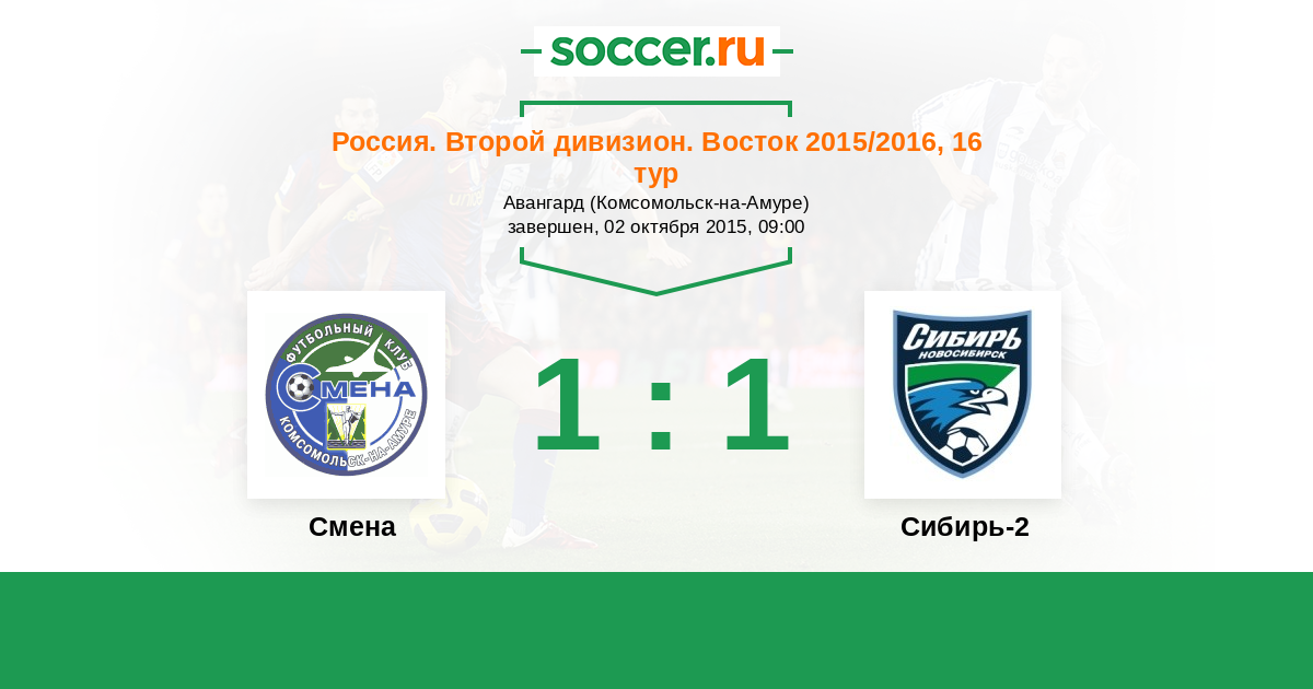Россия. 2-й дивизион. Восток 02.05.2015 Смена Логотип футбольный клуб Смена (Комсомольск-на-Амуре) 1:1 Логотип футбольный клуб Сибирь-2 (Новосибирск) Сибирь-2