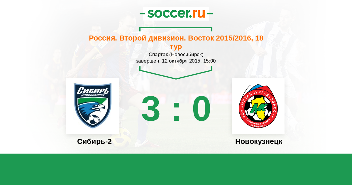 Россия. 2-й дивизион. Восток 22.04.2015 Сибирь-2 Логотип футбольный клуб Сибирь-2 (Новосибирск) 0:3 Логотип футбольный клуб Новокузнецк Новокузнецк
