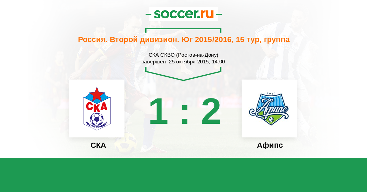 Россия. Вторая лига. Группа 1 04.08.2015 Афипс Логотип футбольный клуб Афипс (Афипский) 1:0 Логотип футбольный клуб СКА (Ростов-на-Дону) СКА