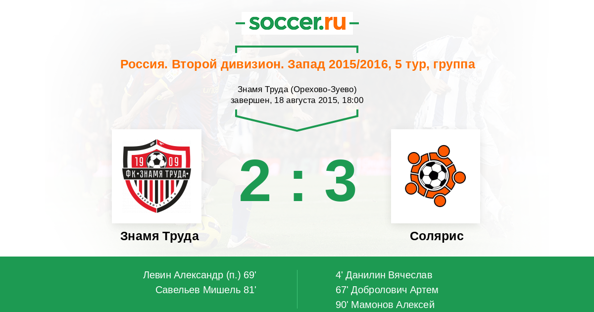 Протокол матча Знамя Труда против Солярис