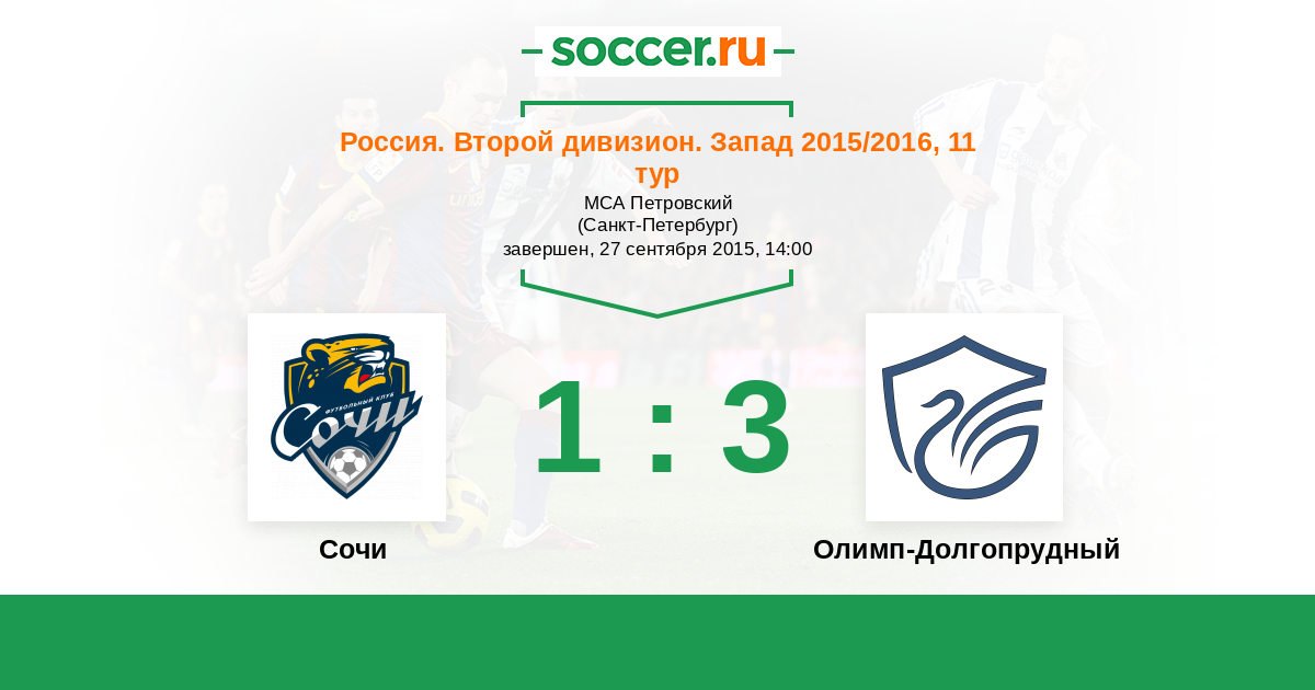 Россия. Вторая лига. Группа 2 02.09.2016 Динамо СПб Логотип футбольный клуб Динамо СПб (Сочи) 1:0 Логотип футбольный клуб Долгопрудный Долгопрудный