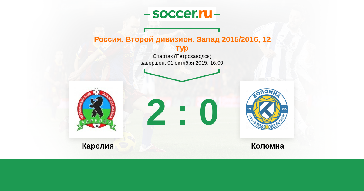 Россия. Вторая лига. Группа 2 11.05.2016 Коломна Логотип футбольный клуб Коломна 1:2 Логотип футбольный клуб Карелия (Петрозаводск) Карелия