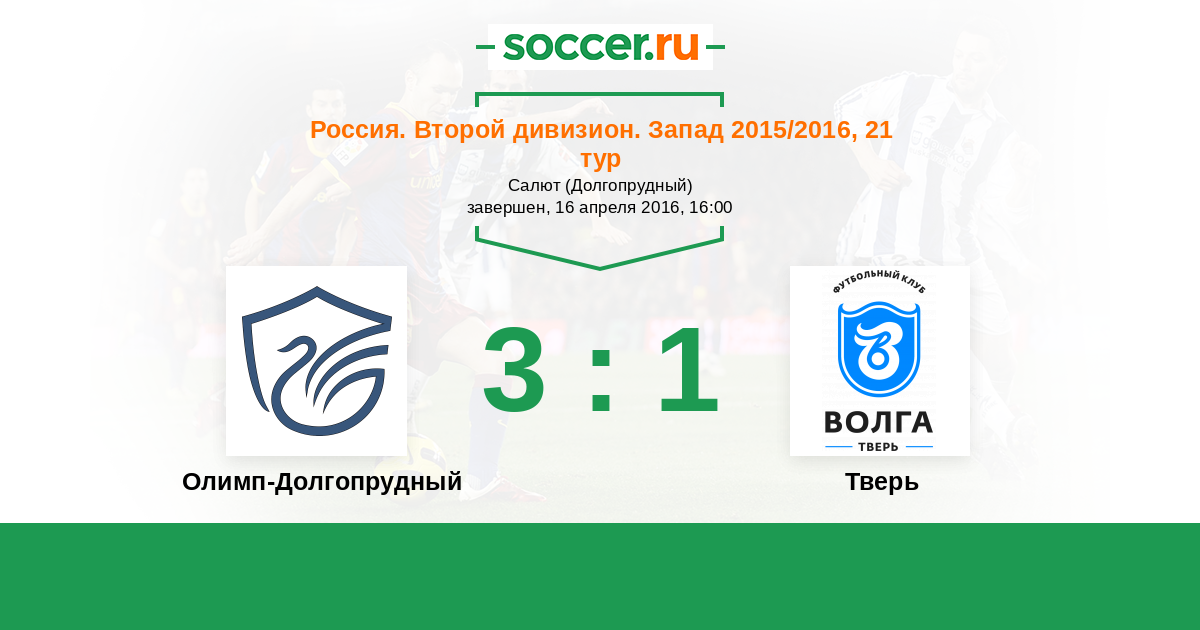 Россия. Вторая лига. Группа 2 01.09.2015 Тверь Логотип футбольный клуб Тверь 1:1 Логотип футбольный клуб Долгопрудный Долгопрудный