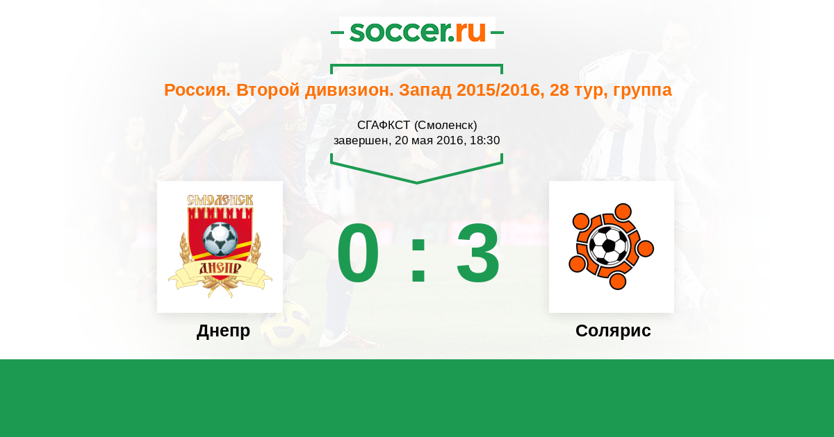 Россия. Вторая лига. Группа 2 05.06.2015 Солярис Логотип Солярис (Москва) 3:1 Логотип футбольный клуб Днепр (Смоленск) Днепр