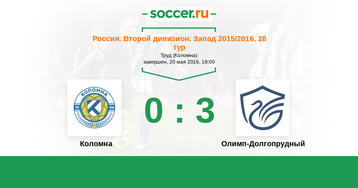 Россия. Вторая лига. Группа 2 05.06.2015 Коломна Логотип футбольный клуб Коломна 2:2 Логотип футбольный клуб Долгопрудный Долгопрудный