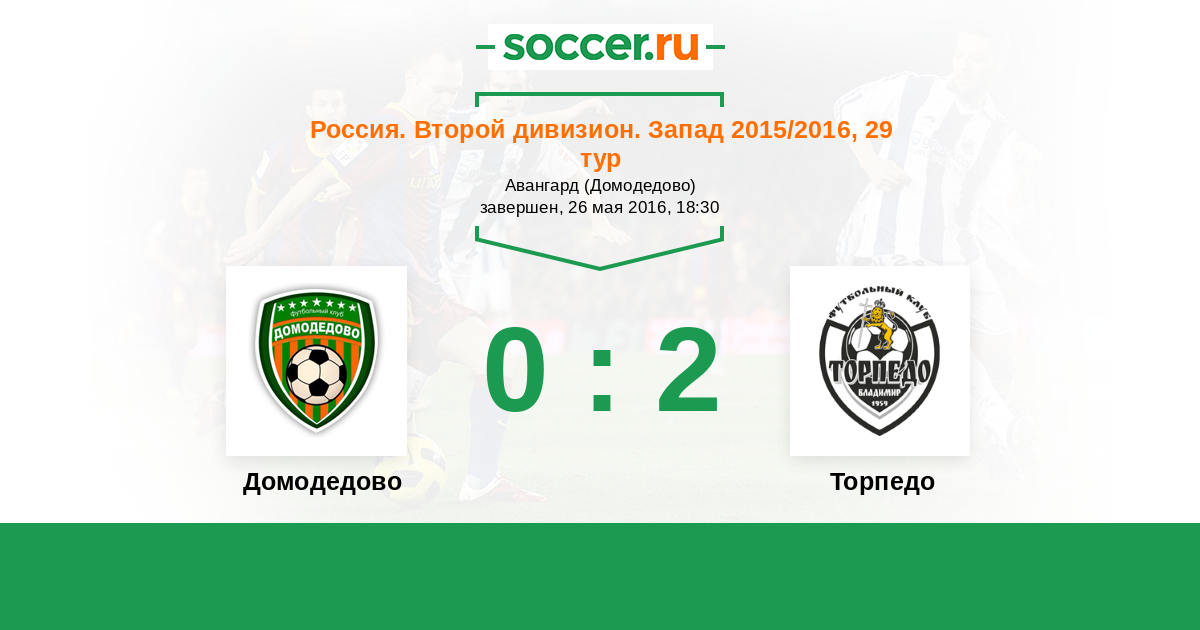 Россия. Вторая лига. Группа 2 23.10.2014 Домодедово Логотип футбольный клуб Домодедово (Москва) 1:0 Логотип футбольный клуб Торпедо (Владимир) Торпедо