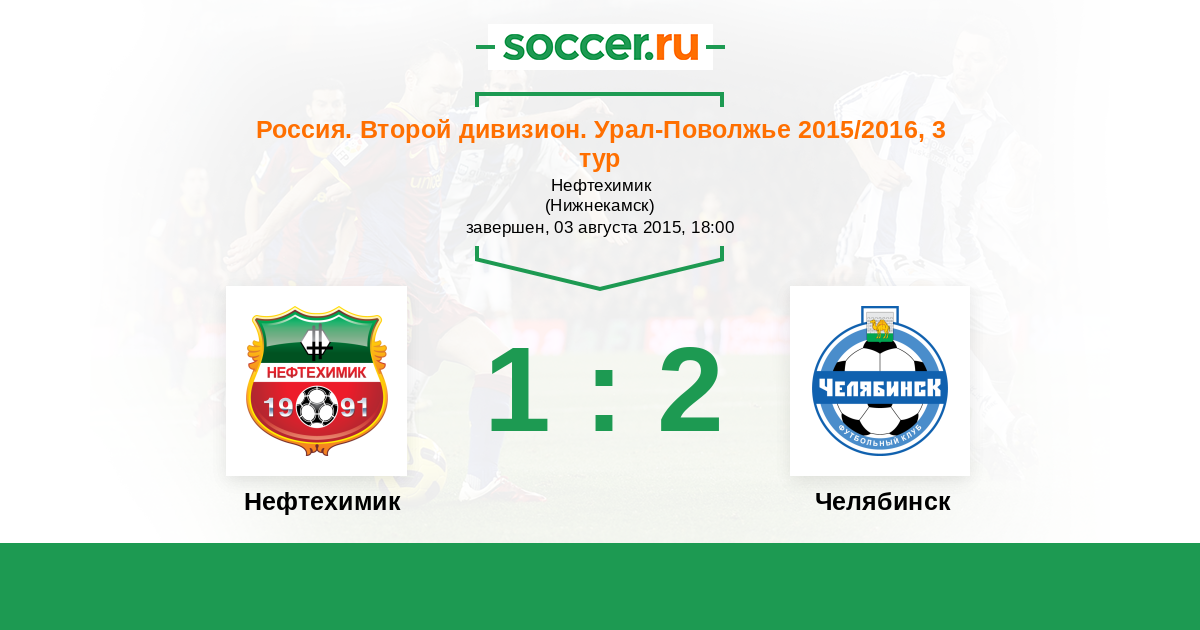 Россия. Вторая лига. Группа 4 21.09.2015 Челябинск Логотип футбольный клуб Челябинск 1:1 Логотип футбольный клуб Нефтехимик (Нижнекамск) Нефтехимик