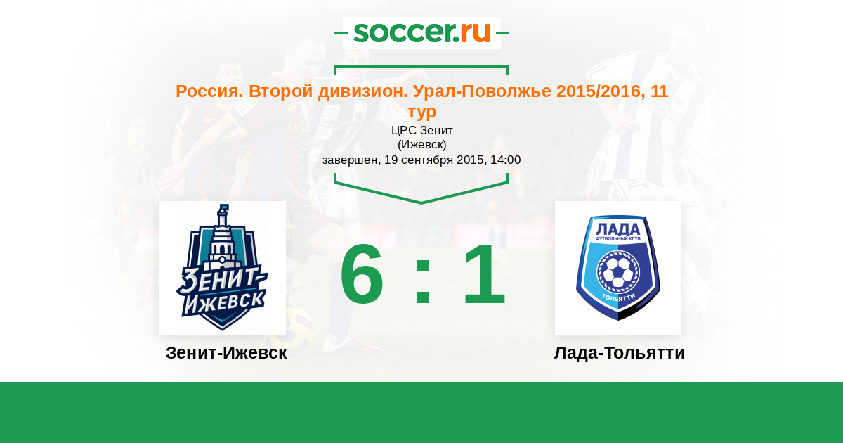 Россия. Вторая лига. Группа 4 28.09.2014 Лада-Тольятти Логотип футбольный клуб Лада-Тольятти 1:3 Логотип футбольный клуб Зенит-Ижевск Зенит-Ижевск