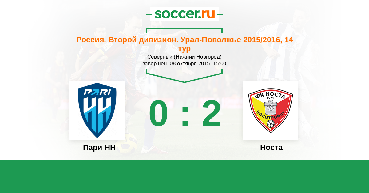 Россия. Вторая лига. Группа 4 06.10.2016 Носта Логотип футбольный клуб Носта (Новотроицк) 1:2 Логотип футбольный клуб Пари НН (Нижний Новгород) Пари НН