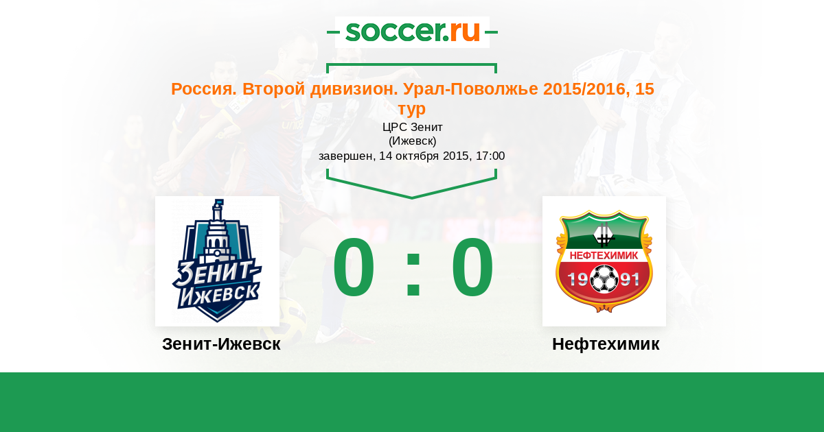 Россия. Вторая лига. Группа 4 30.08.2015 Нефтехимик Логотип футбольный клуб Нефтехимик (Нижнекамск) 3:2 Логотип футбольный клуб Зенит-Ижевск Зенит-Ижевск