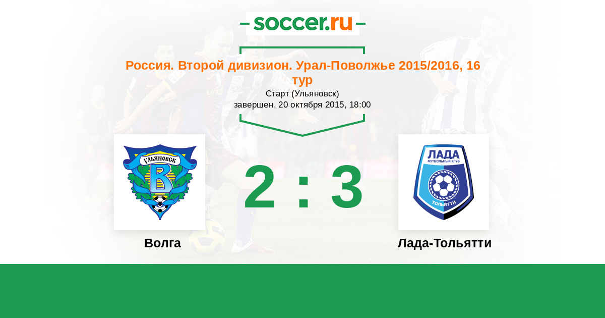 Россия. Вторая лига. Группа 4 25.05.2016 Лада-Тольятти Логотип футбольный клуб Лада-Тольятти 2:2 Логотип футбольный клуб Волга (Ульяновск) Волга