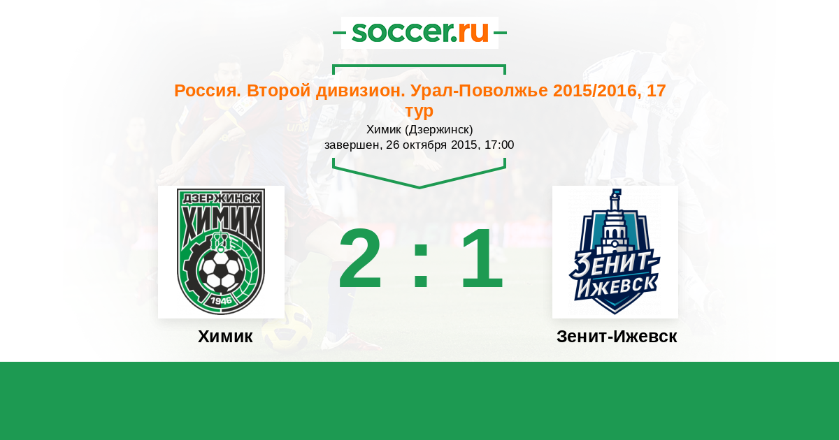 Россия. Вторая лига. Группа 4 17.10.2011 Зенит-Ижевск Логотип футбольный клуб Зенит-Ижевск 3:1 Логотип футбольный клуб Химик (Дзержинск) Химик