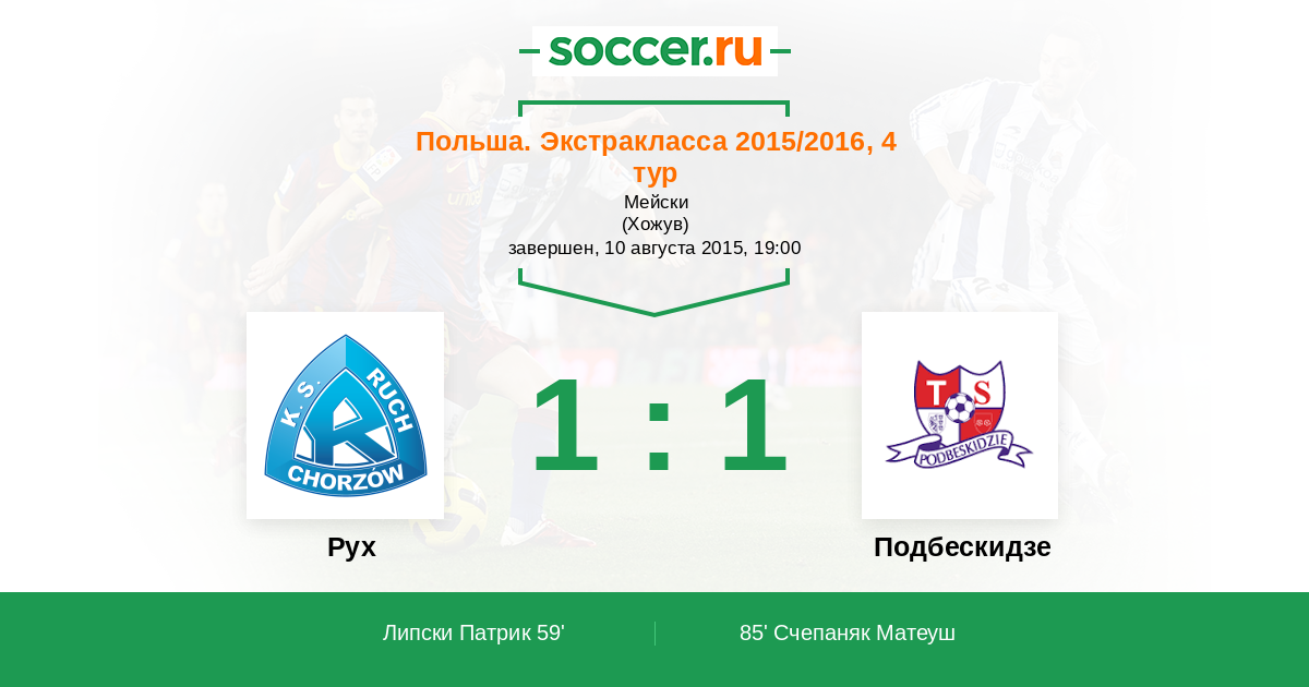 Протокол матча Рух против Подбескидзе