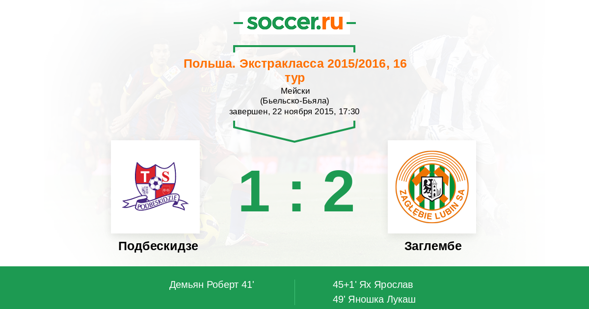 Протокол матча Подбескидзе против Заглембе