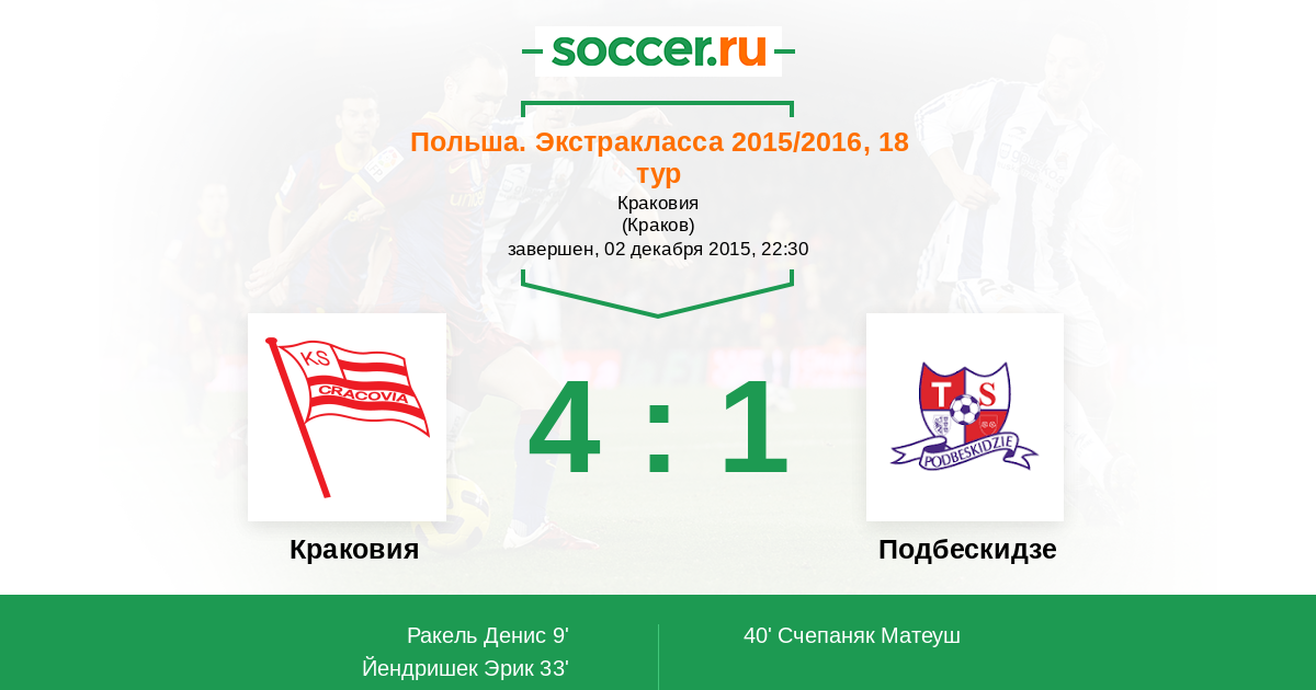 Протокол матча Краковия против Подбескидзе