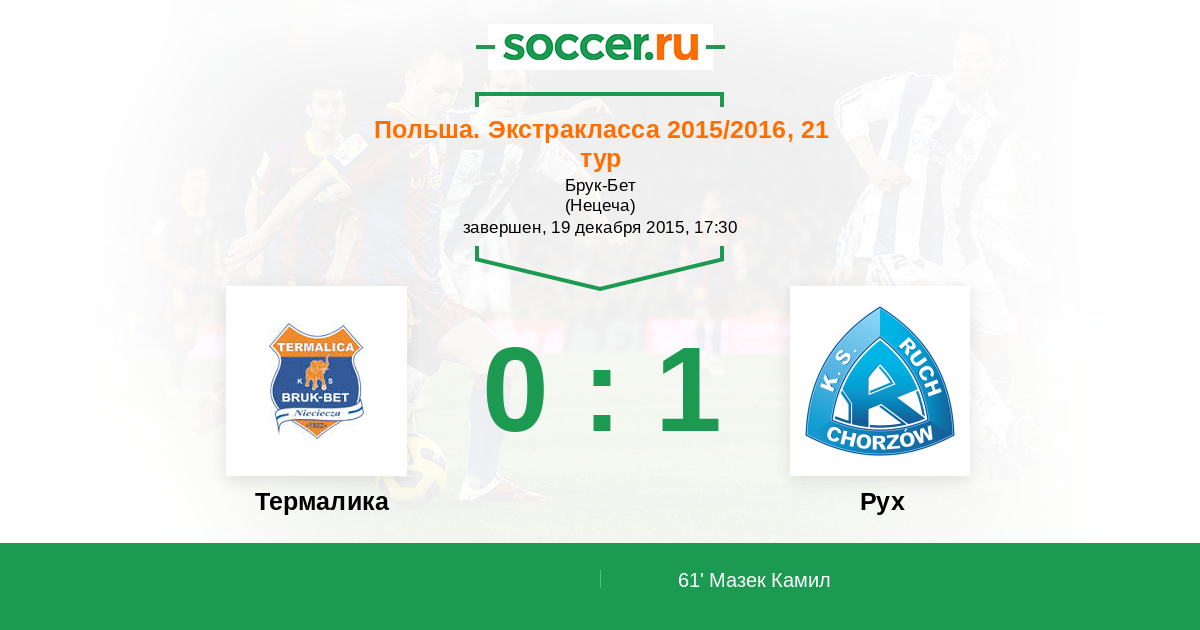 Протокол матча Термалика против Рух