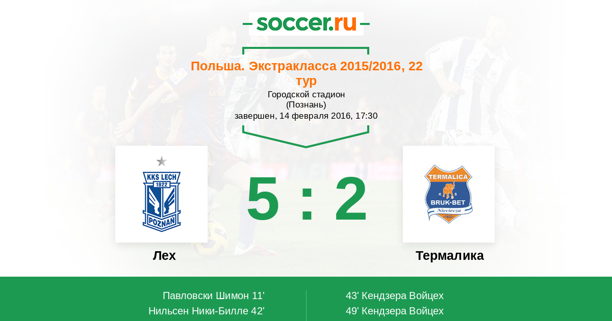 Протокол матча Лех против Термалика