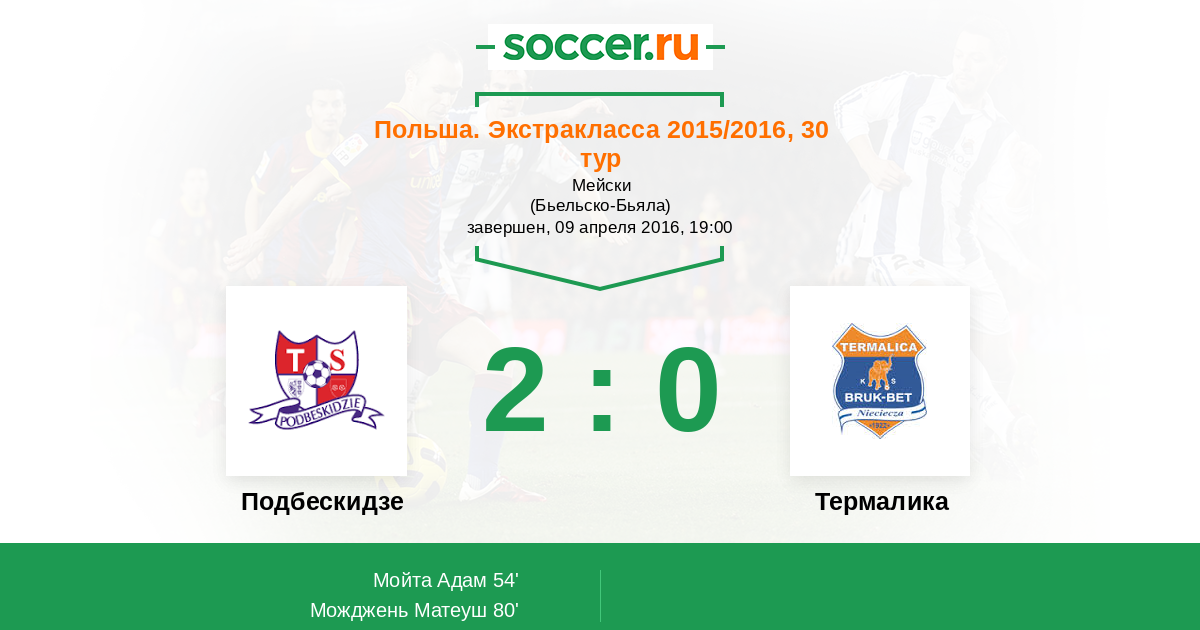 Протокол матча Подбескидзе против Термалика