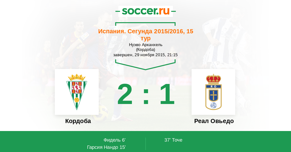 Протокол матча Кордоба против Реал Овьедо