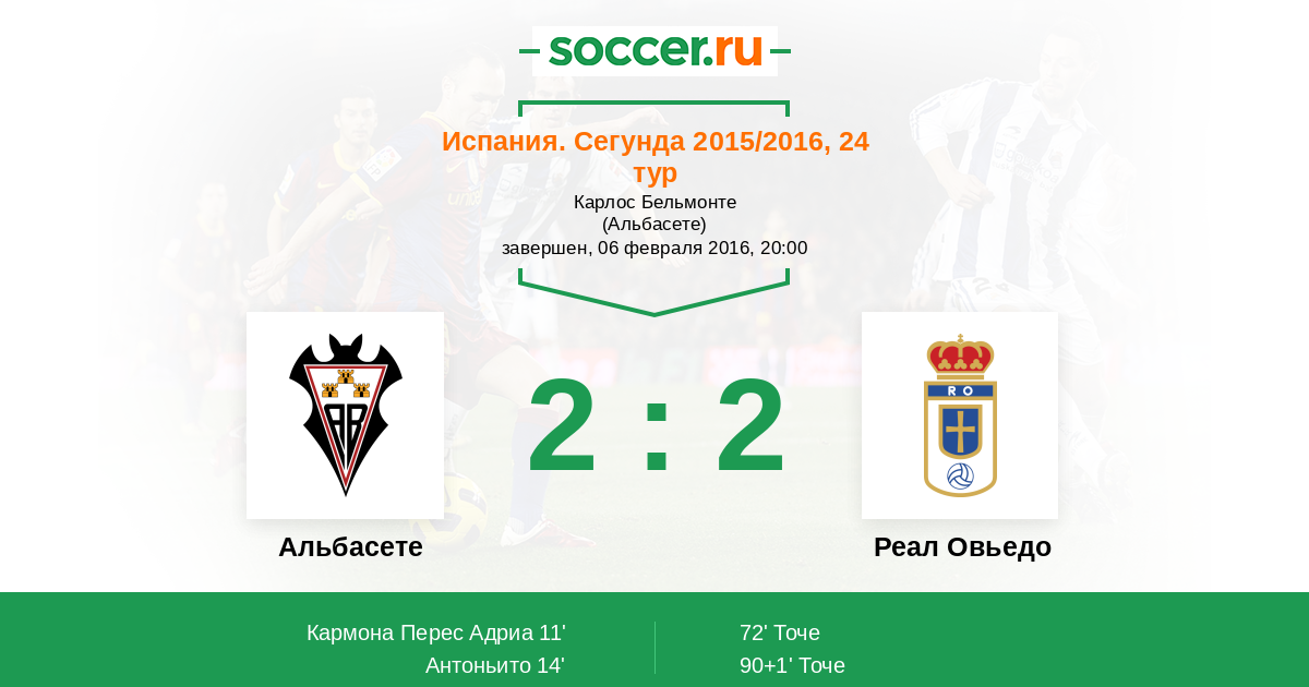 Протокол матча Альбасете против Реал Овьедо