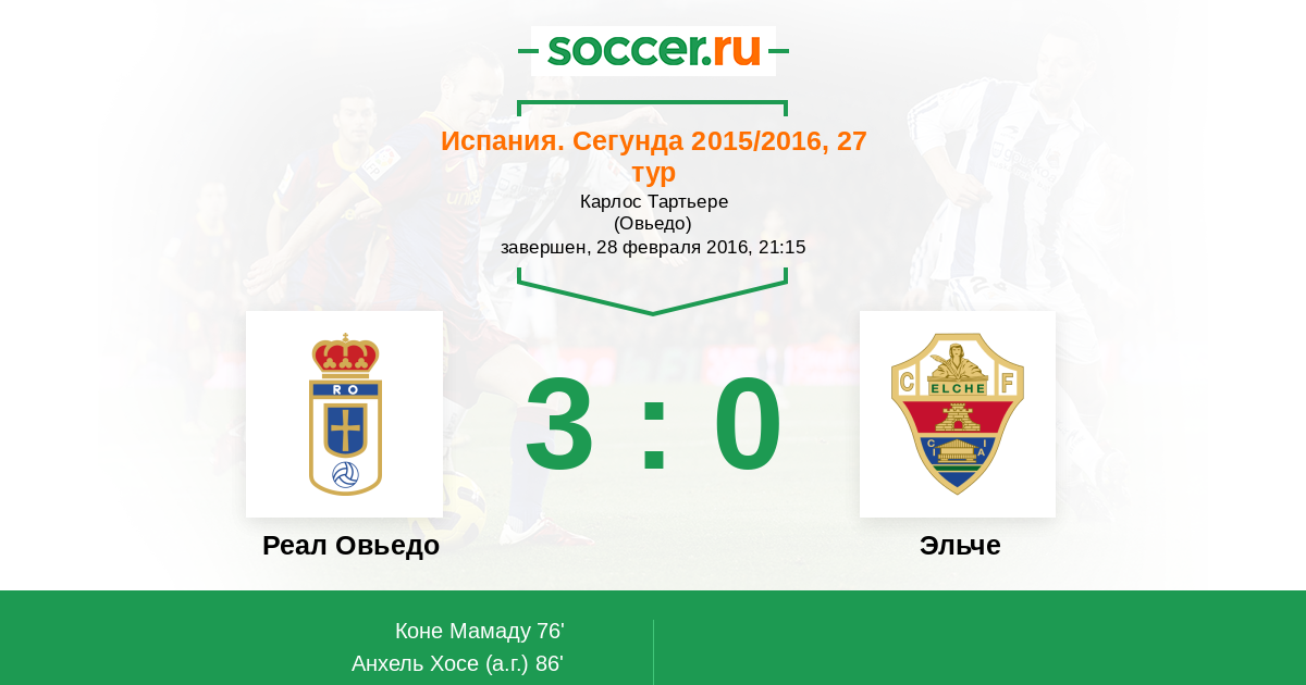 86' (2:0) Автогол Анхель Хосе (14)