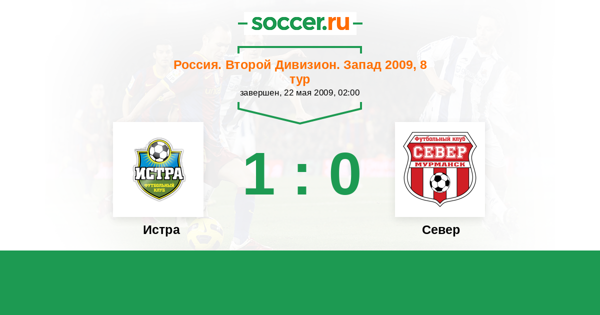 Россия. Вторая лига. Группа 2 03.09.2009 Север Логотип футбольный клуб Север (Мурманск) 0:2 Логотип футбольный клуб Истра Истра